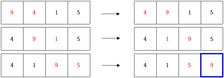 - 로직을 1번 적용할 때마다 큰 숫자가 뒤에서 1개씩 결정