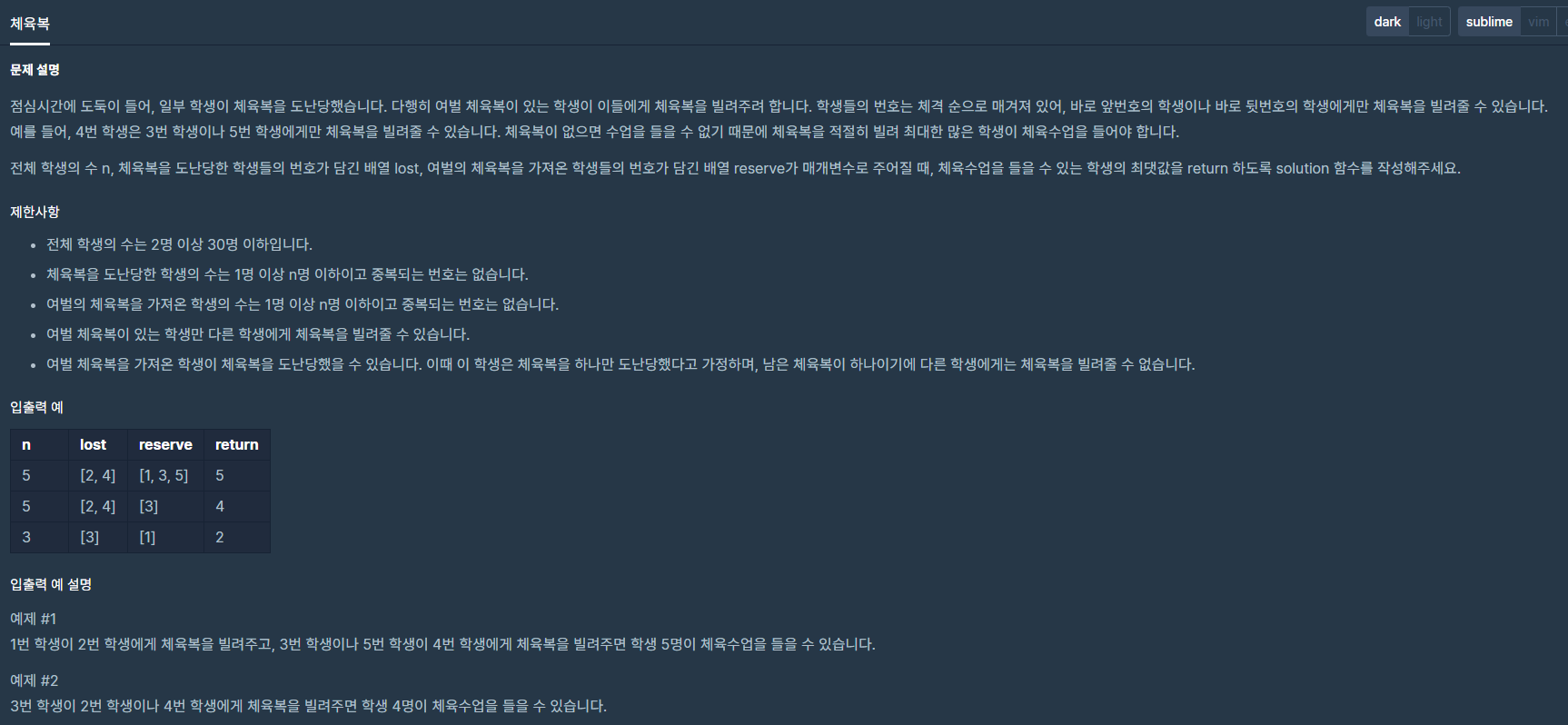 | [프로그래머스/python] 체육복 (0) | 2020.07.21 |