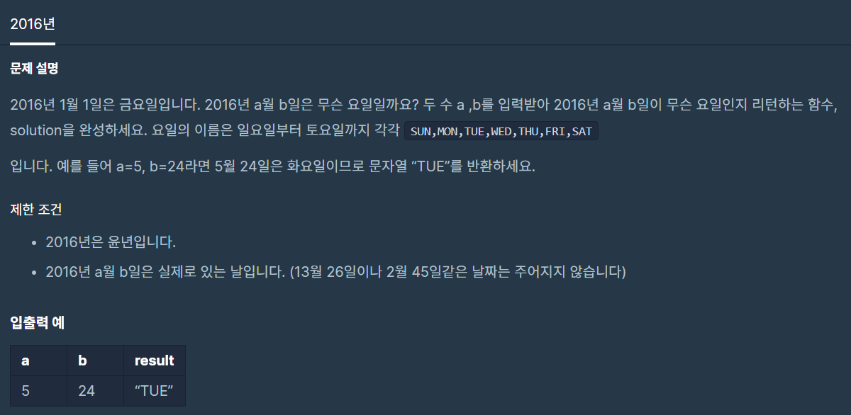| [프로그래머스/python] 2016년 (0) | 2020.07.21 |