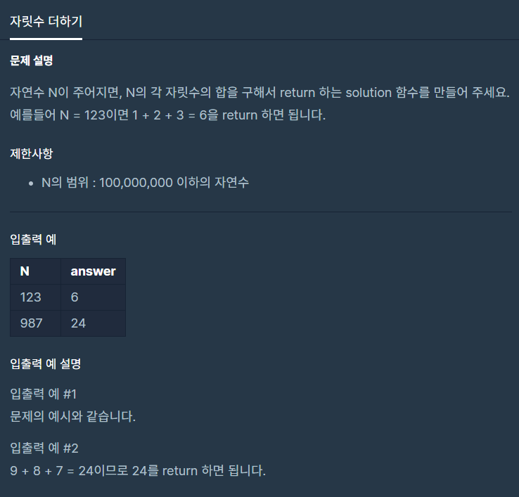 | [프로그래머스/python] 자릿수 더하기 (0) | 2020.07.14 |